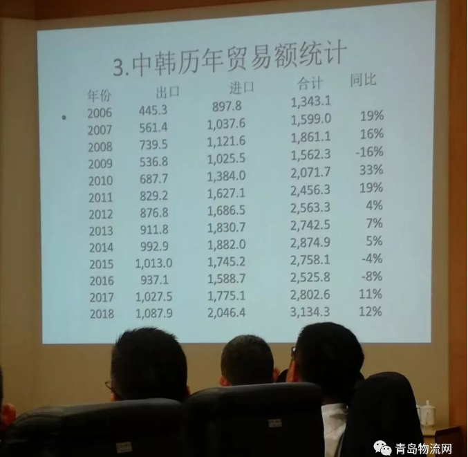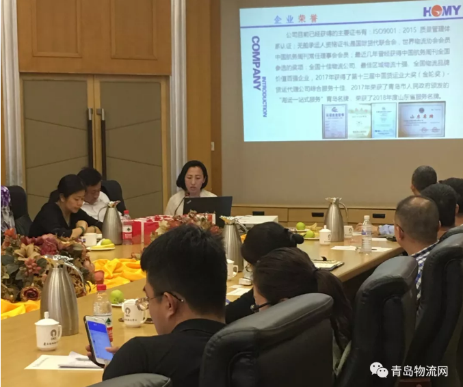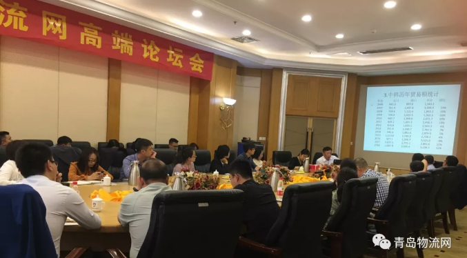 协办单位青岛航美国际物流有限公司的代表对公司业务做了推介。航美是青岛本土公司,从日韩航线起家,如今发展成为从业人员200多名,13个分支机构,年产值达2亿元人民币的大型货代公司。航美的日韩航线有着20多年的历史,深谙韩国航线的布局:从港口、船公司、班期到货代,熟悉熟知熟练,可谓是把韩国航线深耕深挖的典范。