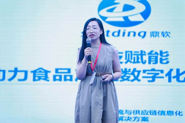 山东鼎软天下信息技术有限公司市场运营总监袁玉荣的演讲主题是《科技赋能,助力食品产业数字化转型升级》。